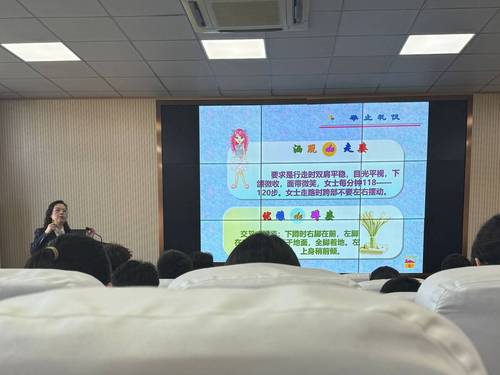 讲座中,费老师就生活中的礼仪展开,从仪容、仪表、仪态、言谈举止等多方面进行细致讲解。在讲解握手礼与拥抱礼时,费老师还与同学们进行互动,现场气氛活跃,同学们受益匪浅。