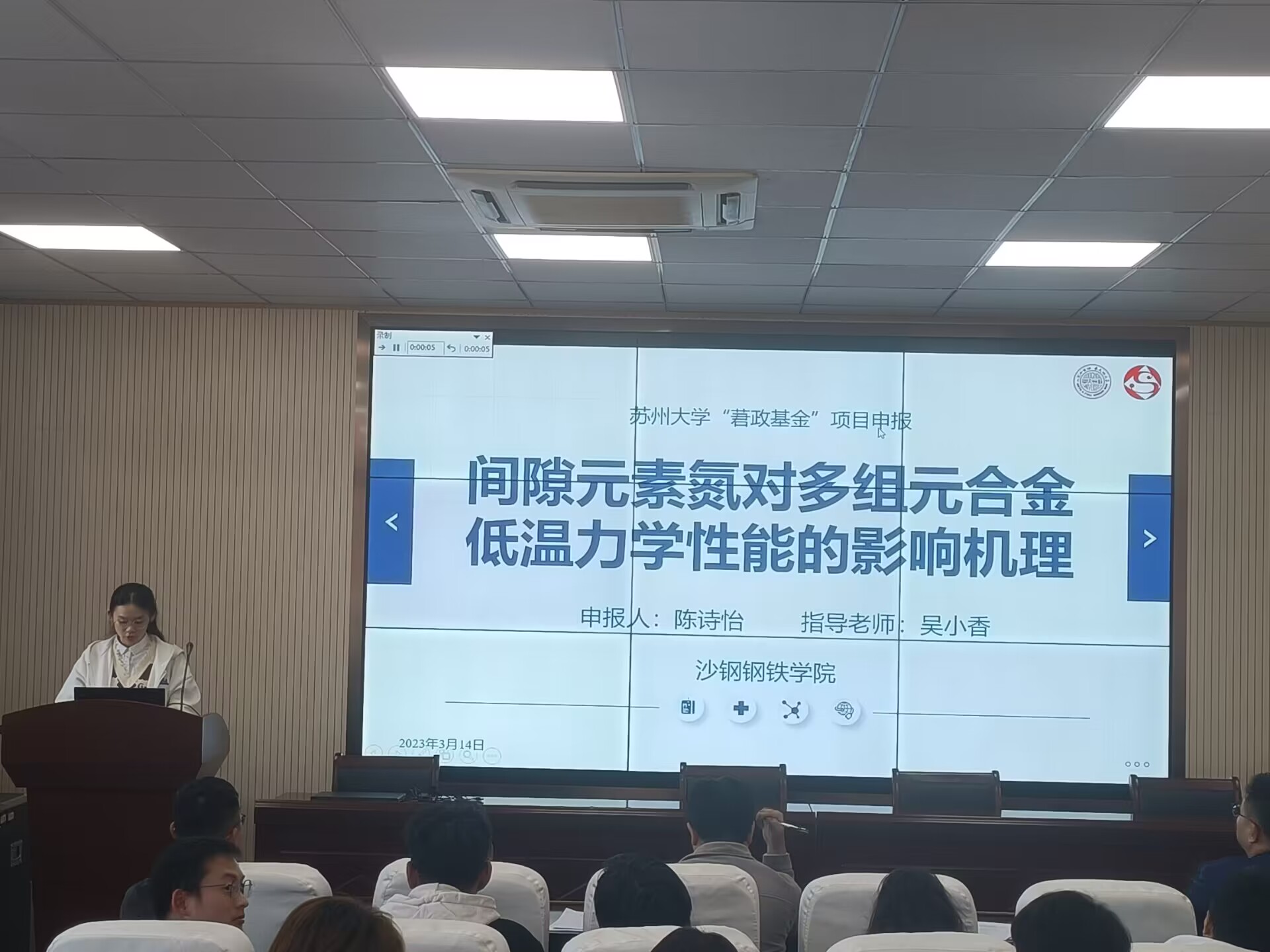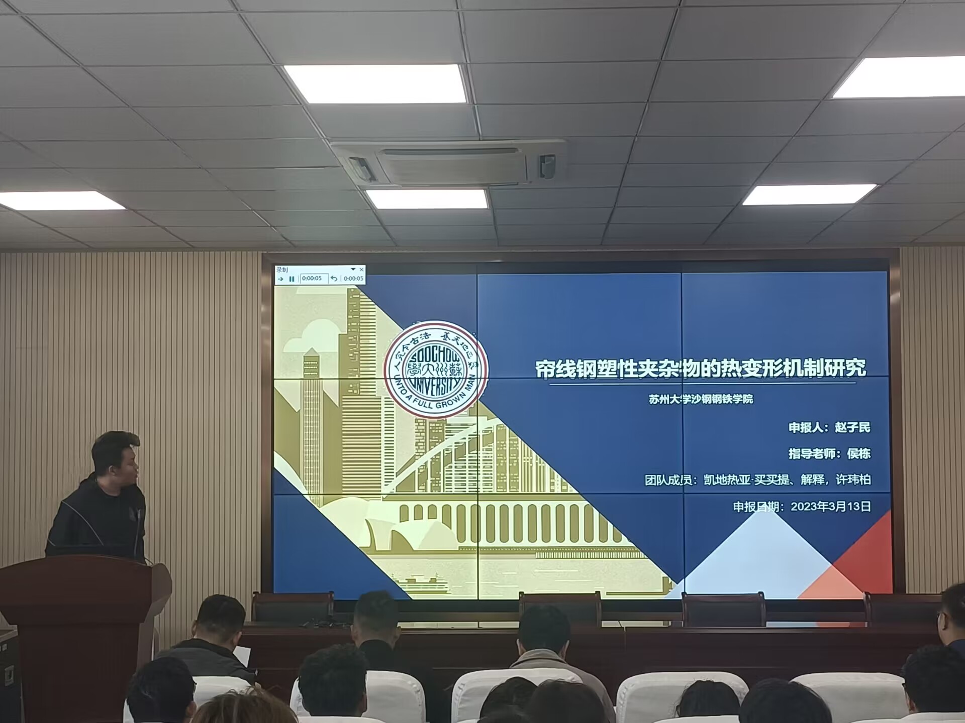 2023年3月14日下午2点,本着公平、公开、公正的原则,沙钢钢铁学院2023年本科生科研项目答辩会在冶金楼3102成功举行,参与本次答辩的本科生项目类型有莙政基金、大学生创新创业训练计划、大学生课外学术基金重点项目。本次答辩会邀请到各系老师代表:许松松、李鹏、赵伟、李向龙、田俊五位老师担任评委,17位同学参与答辩。学院副院长丁汉林主持会议。