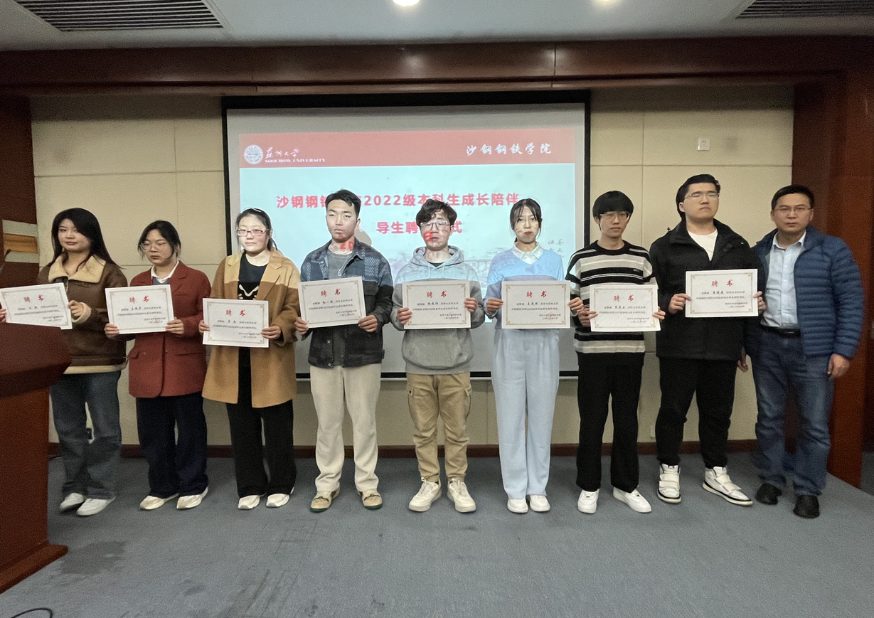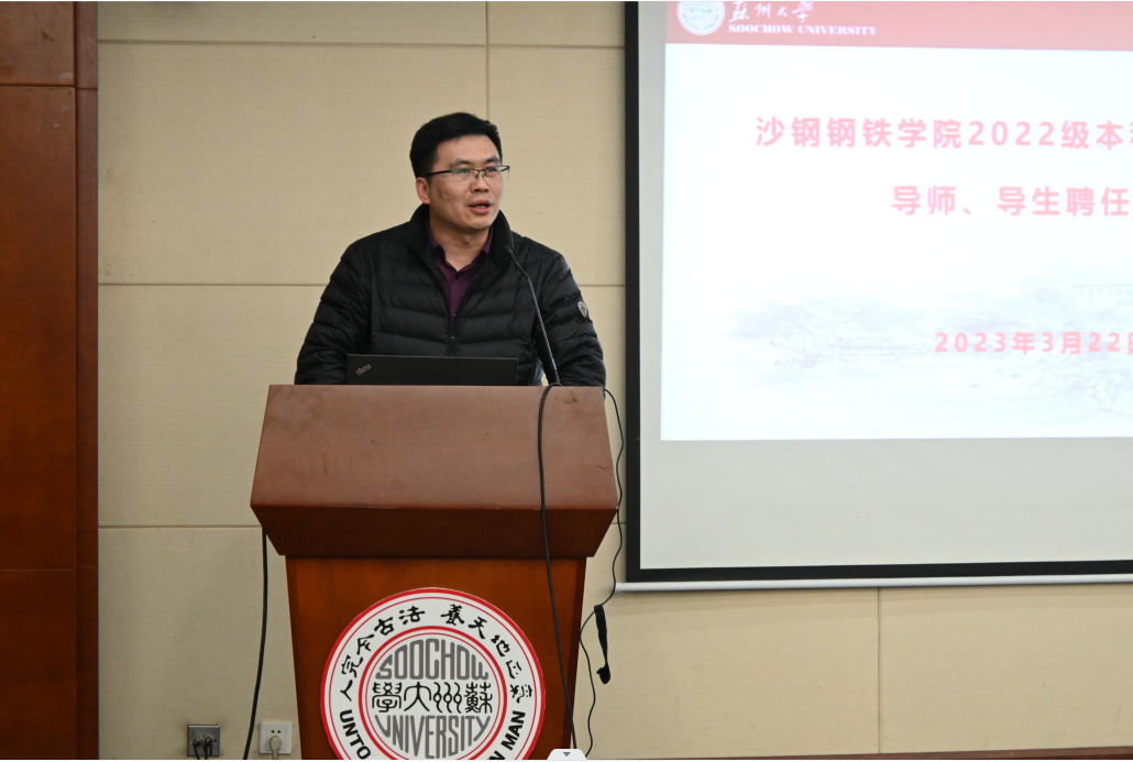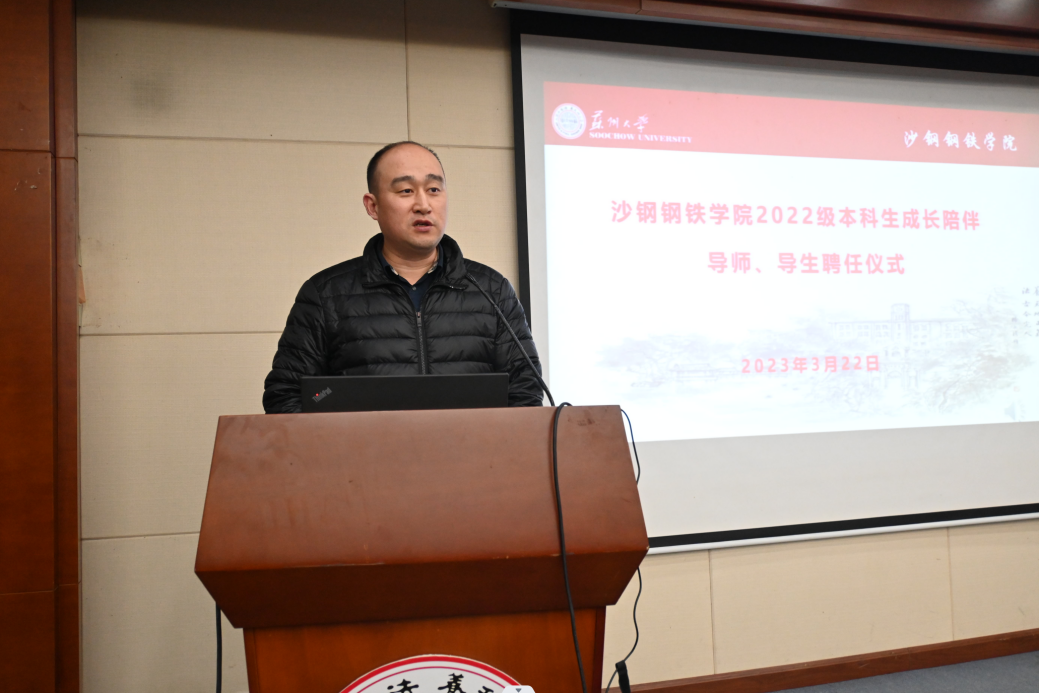 为全面贯彻立德树人根本任务,进一步落实学校本科生成长陪伴计划部署,完善学院2022级本科生陪伴计划,学院于2023年3月22日下午2点,在阳澄湖图书馆小报告厅举行2022级本科生成长陪伴导师、导生聘任仪式。学院党委书记沈彩云、副院长王德永、党委副书记、副院长徐海洋、各系主任、导师代表以及导生参加会议。