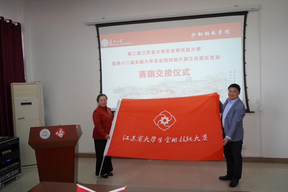 由江苏省大学生机械工程学会主办、苏州大学沙钢钢铁学院承办的第二届江苏省大学生金相技能大赛暨第十二届全国大学生金相技能大赛江苏赛区复赛赛旗交接仪式于2023年4月2日在苏州大学沙钢钢铁学院顺利召开。