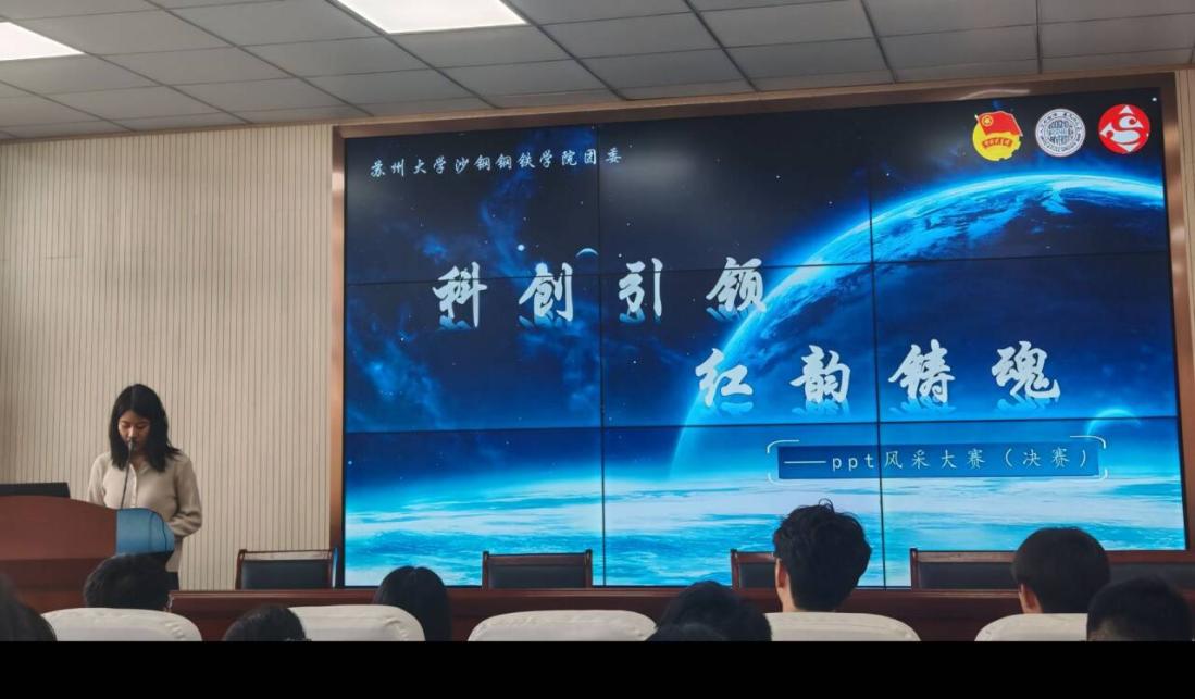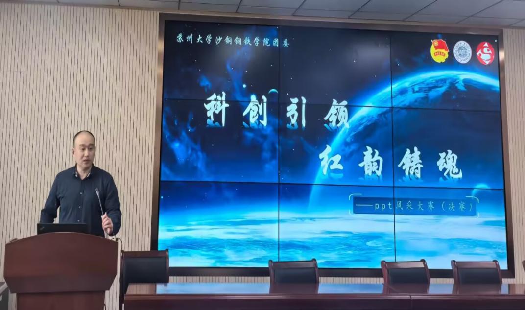 为深入学习贯彻习近平新时代中国特色社会主义思想,弘扬中华优秀传统文化,引导学院青年坚定文化自信,激发创新意识,树立科技报国志向,4月9日下午,苏州大学沙钢钢铁学院成功举办“科创引领,红韵铸魂”PPT风采大赛决赛。决赛在阳澄湖校区冶金楼3102举行,学院党委副书记、副院长徐海洋,学工办主任郁佳莉出席活动,与学院学生科技协会主席丰粲实,校团委青年传媒中心部长、院团委分团校部长姜海以及学院青年志愿者协会主席严诚共同担任评委。14位青马学员在初赛中表现出色,齐聚决赛舞台。决赛由院团委分团校部长韩琰凌主持。