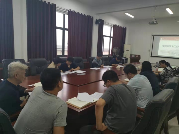 开学伊始,学院实验室安全工作领导小组举行第一次安全工作会议,阳澄湖校区治安科长周伟虎等一行出席并指导工作。宋清华书记要求全面贯彻落实学校关于“喜迎国庆70周年,做实实验室安全工作——‘保平安、守底线、零容忍’实验室安全风险专项整治工作方案”,根据通知要求,对学院实验室安全隐患做全面梳理,摸清家底;对出入实验室人员实行准入制,未经培训合格,不得进出实验室;认真排查整改安全隐患,做到6个确保。实验中心主任吕凡对学院实验室安全风险专项整治工作方案作出具体分工,讲责任落实到人,确保本学期实验室安全工作顺利进行。实验室安全工作小组国宏伟老师要求各人员按工作计划重点巡查实验室及车间隐患,健全危化品管理体系。周伟虎处长表示实验室安全无小事,实验室安全工作小组必须严格管控,做到所有实验室规章制度上墙、严禁设备运行而人员脱岗,对于违规操作的人员要有相应的惩罚措施。