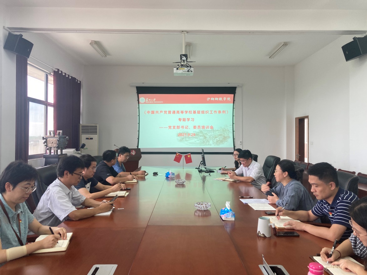 专职组织员郑彦之针对新修订的《中国共产党普通高校基层组织工作条例》(以下简称《条例》)作专题学习辅导。她围绕《条例》修订颁布的重要性和必要性、对贯彻落实新时代党的组织路线、对高校党员队伍建设和思想政治工作以及对落实高校党建工作责任作出的重要制度安排等四个方面展开。她强调,《条例》对高校基层党组织工作作出了全面规范,体现了近年来高校党建工作的理论、实践和制度创新成果,是新时代高校党的建设的基本遵循。随后,郑彦之结合《江苏省普通高等学校基层党支部工作标准》和《苏州大学党支部工作标准》,介绍了基层党支部工作标准主要内涵,对照标准梳理了基层党支部、支部书记和支部委员的职责,强调要落实全面从严治党要求,加强党支部标准化建设,同时进一步探讨了党支部如何围绕学院中心工作发挥作用。