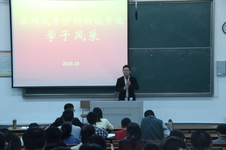为了深入推进优良学风建设,营造良好学风氛围,10月12号晚18:30,沙钢钢铁学院学子风采宣讲活动在阳澄湖校区1A212举行。学院2016级、2017级、2018级的同学全体参加了本次活动,辅导员孔川、郁佳莉全程参加了宣讲。
