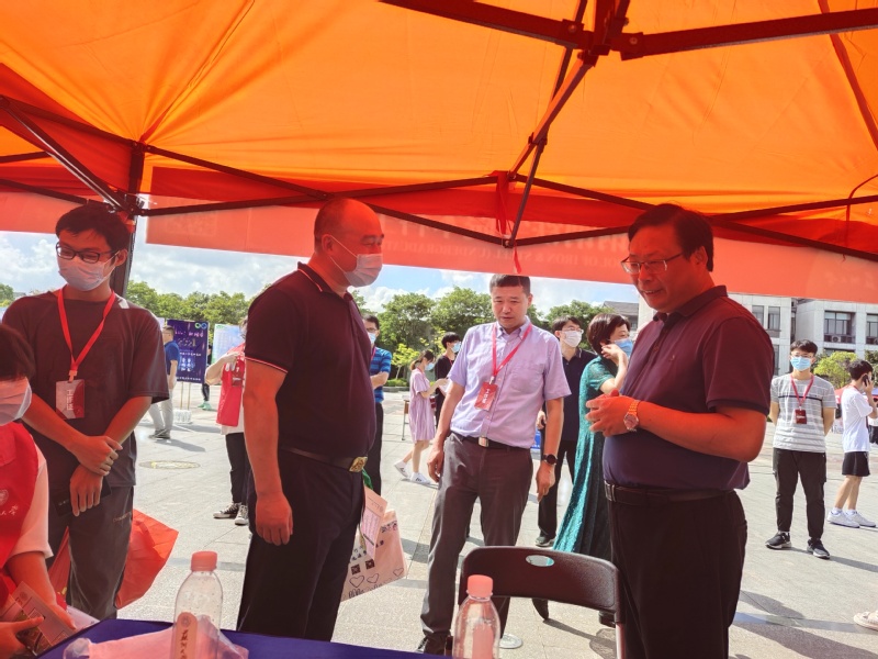 校领导对我院迎新工作高度重视,苏州大学党委书记江涌,党委常委、总会计师周高来到阳澄湖校区关心迎新工作的进展,同时对新生的到来表示热烈欢迎,关心学生学习生活情况,祝愿他们日后能成为国家栋梁之才,并与他们合影留念。