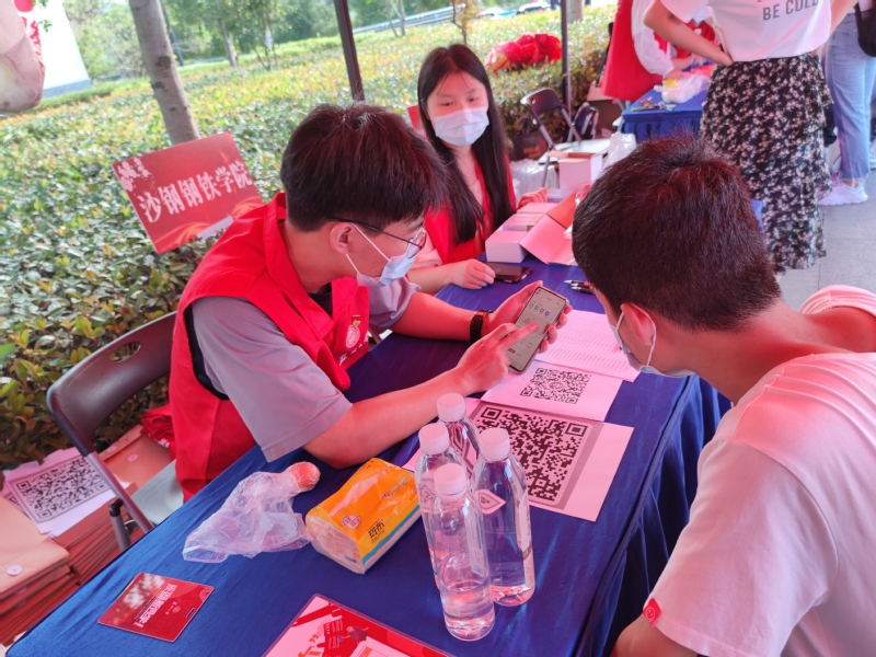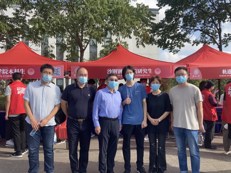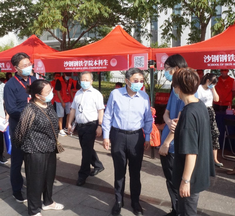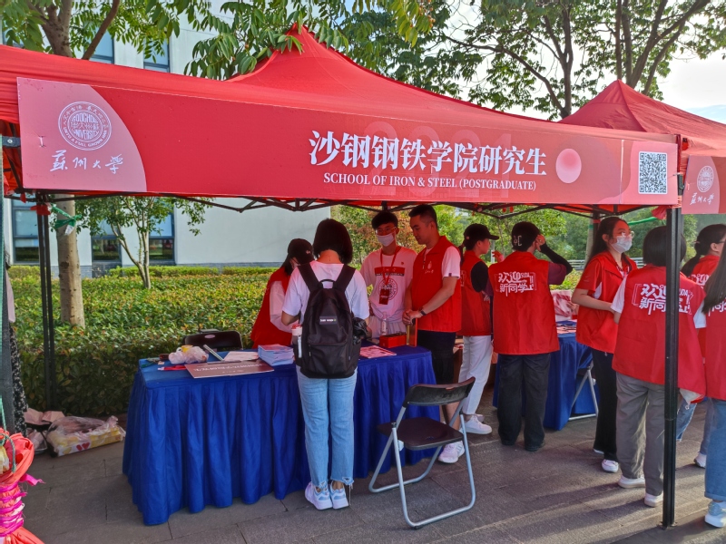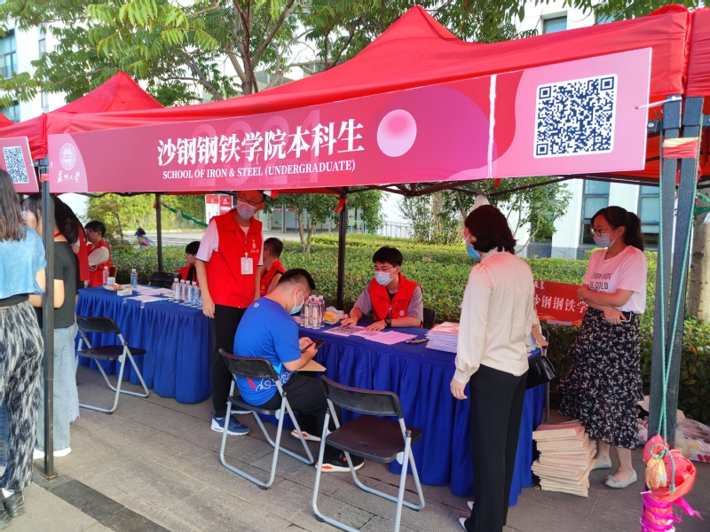沙钢钢铁学院宋清华书记一早就来到迎新现场,与相关工作人员一起开始迎新工作,了解新生报到情况,她与新生及新生家长交谈,全面了解新生,并随时与工作人员联系,及时掌握小21们的最新报道情况。