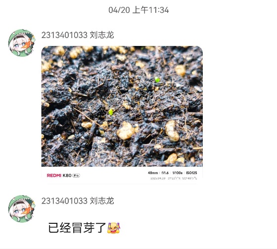 活动期间同学们在群中积极交流种植经验,关注植物生长状态。