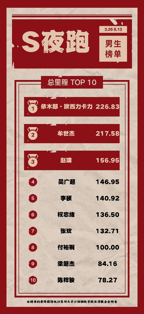 4月2日,本期“S”夜跑正式开幕!开幕式上,同学们迈着轻快的步伐向着夕阳奔跑,脸上洋溢着灿烂的笑容。46天里,学院同学累计打卡公里数超4400公里,相当于跨越大半个中国。