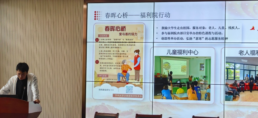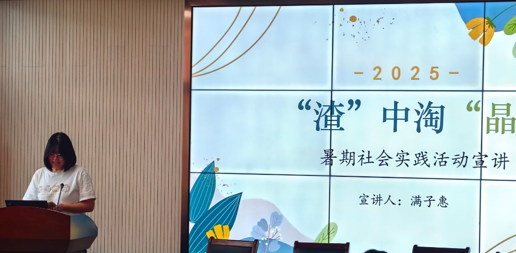 随后,我院的三组特色实践团队分别进行宣讲,“筑梦远航”暑托班团队扎根社区基层,用爱心与责任陪伴青少年成长,在服务中彰显青春担当;“春晖心桥”——福利院行动团队,聚焦特殊群体关爱,将温暖送进福利院,以实际行动践行志愿精神;“渣”中淘“晶”团队聚焦国家战略需求,深入钢铁产业前沿,致力于循环经济和绿色低碳发展的研究探索,在推动产业可持续发展方面取得了初步成果。