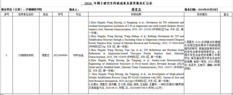 根据学校《关于做好2024年研究生国家奖学金评审工作的通知》要求,结合《沙钢钢铁学院硏究生奖助学金评定细则》要求,学院严格规范程序、广泛宣传、积极动员,按照学生自愿申请、学院评审委员会公正评审的原则,圆满完成本年度国奖初步评审,拟推荐魏珂正、费文斌获得硕士研究生国家奖学金,拟推荐周星志博士参加博士研究生国家奖学金机动名额评选。具体信息如下: