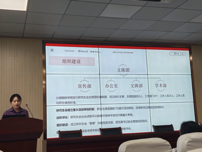 2025年6月11日下午,我院2024-2025学年学生组织工作总结会在冶金楼3102会议室顺利举行。学院党委副书记、副院长徐海洋,团委书记成苗,学工办副主任邹力子与各学生组织成员参加活动,围绕本学年工作开展情况进行全面总结与交流,共同回顾过去九个月的奋斗历程,共谋未来发展方向。