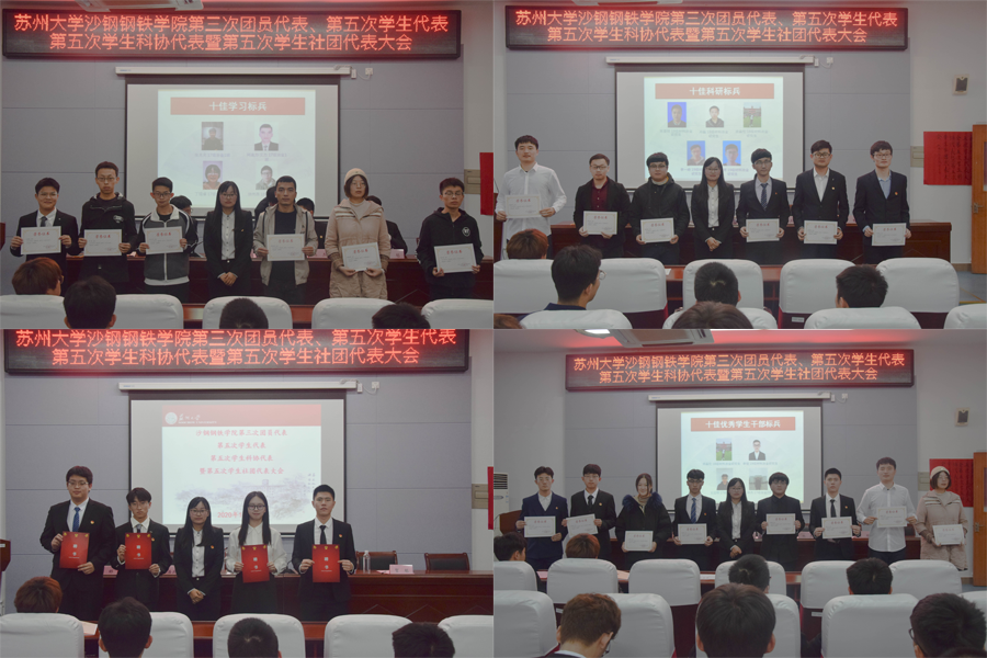 大会对沙钢钢铁学院2020年“十佳学习标兵”,“十佳科研标兵”,“十佳志愿服务标兵”,“十佳优秀学生干部标兵”进行了表彰,肯定他们取得的成绩。大会为上届团学组织负责人颁发聘书,感谢他们的辛勤付出。