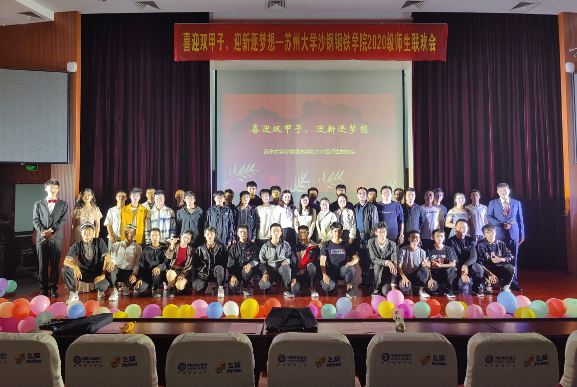 2020年10月17日晚7:00,喜迎双甲子,迎新逐梦想——苏州大学沙钢钢铁学院2020级师生联欢会在苏大阳澄湖校区图书馆大报告厅成功举行。苏州大学沙钢钢铁学院党委书记宋清华、辅导员、班主任参加了本次活动。恰逢苏大120周年校庆,希望沙钢学子秉承校训,传承苏大人精神,砥砺前进,奋进开拓,梦想再起航。