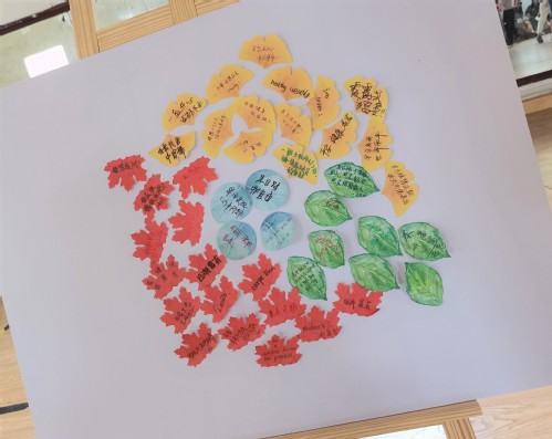 快乐时光总是短暂的,不知不觉中活动进行到了最后一个环节——“致未来的自己”。大家在便利贴上纷纷写下一段文字,送给未来的自己。有的同学表达了自己在活动中收获的开心愉悦的心情,也有的同学抒写了自己对未来的憧憬和期待,每一个小小的愿望和期许都在色彩缤纷的展示画架上闪耀着温暖的光芒。