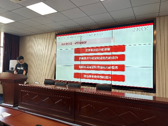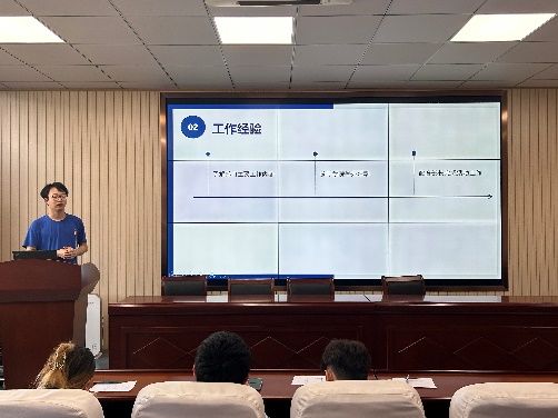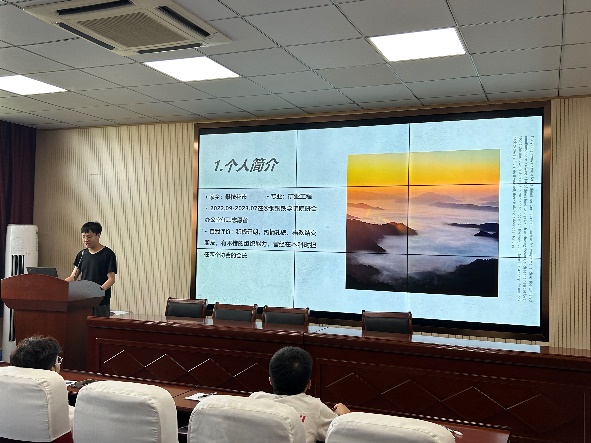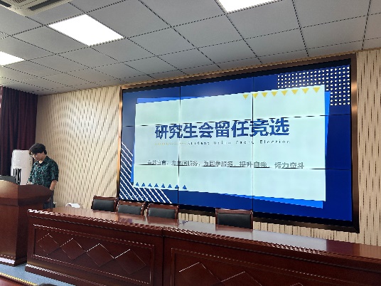首先,研会主席团成员和各部门部长,对学院研究生会过去一年的工作进行总结汇报,并对未来工作提出希望与要求。随后,各部门志愿者按照顺序,依次上台发表竞选演讲,介绍个人情况、经验和对研究生会工作的构想。在问答环节,每位竞选者深入浅出得回答评委的问题,展示出一定的专业素养和扎实的知识储备。魏珂正在发言中着重强调了学院科技氛围建设的重要性,提出了以竞赛为指引,科研为导向,引导研究生优良学风建设。李明奇回顾了自己一年里在研会的收获与成长,并对院研究生会未来的组织建设提出了可行性建议。