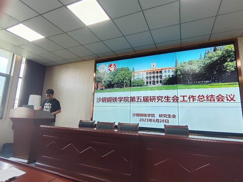 仲夏时节,阳澄湖畔,2023年6月28日下午,苏州大学沙钢钢铁学院研究生会在冶金楼3102举行第五届研究生会工作总结会议暨临时工作组成员选举大会。沙钢钢铁学院团委副书记、研究生辅导员成苗,院研究生会主席团成员、各部门部长、志愿者出席本次会议,会议由执行主席程一健主持。