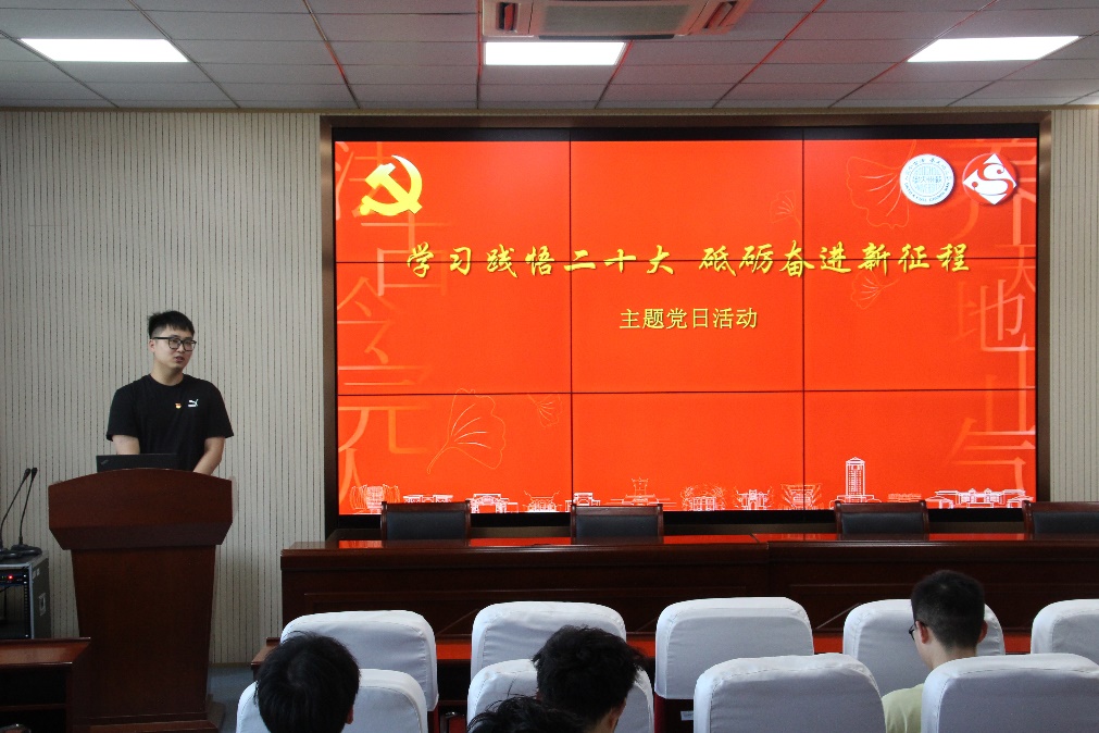 为学习领会党的二十大精神,必须坚持全面准确,深入理解内涵,精准把握外延。党支部发展对象及研究生会骨干带头分享诵读红色经典,并结合自己在思想、科研、学生工作等方面贯彻落实党的二十大精神的心得,让其他研究生从实际案例中深刻领会党的二十大精神深刻而丰富的内涵意义。