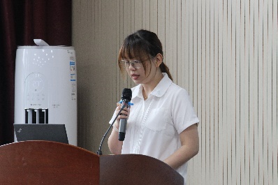 在校生代表付星萌回顾了学长在学习、科研、生活等各方面对学弟学妹们的无私帮助和细心指导,她对学长学姐们表示衷心的感谢,并祝愿毕业生们在新的起点做出贡献,实现自己的人生理想和价值。
