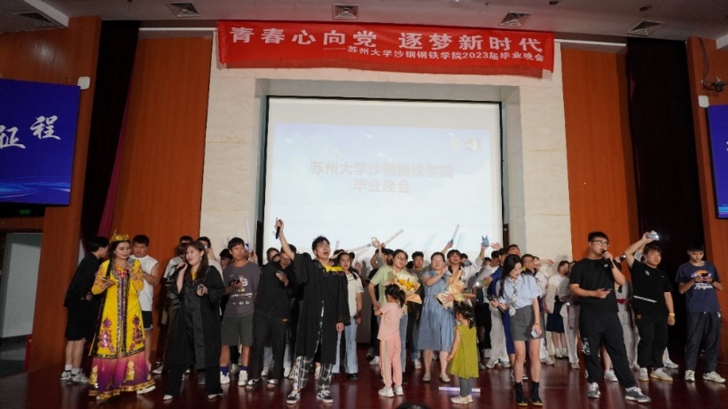 6月16日晚,青春心向党,逐梦新时代——沙钢钢铁学院2023届毕业晚会在阳澄湖校区图书馆大报告厅成功举办。学院党委书记沈云彩,毕业班辅导员成苗,辅导员邹力子以及全体毕业生参加了本次晚会。