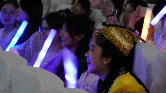 晚会开始前,毕业生们首先到展板处签名留念并领取节目单、荧光棒。