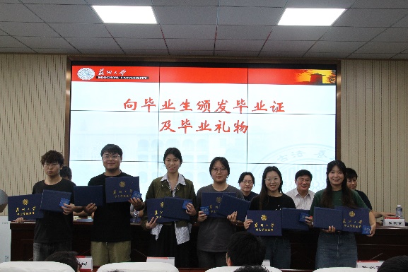 学院领导向每一位毕业生颁发了毕业证书并赠送订制的毕业礼物。