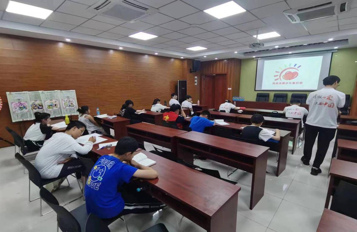 2023年7月12日,苏州大学沙钢钢铁学院“青春探索,新工科相约相城”社会实践小组来到水韵花都社区党群服务中心,给青少年暑托班的孩子们进行作业辅导。