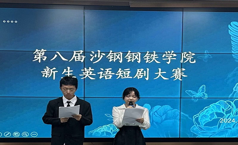 为丰富校园文化生活,锻炼学生英语交际能力,提高学生的英语应用水平,2024年10月16日下午,由我院科协承办的第八届苏州大学沙钢钢铁学院新生英语短剧大赛于冶金楼3102成功举办。沙钢钢铁学院党委副书记徐海洋、2024级金属一班班主任陈伟健、2024级金属二班班主任陈卓尔、学院学工办主任郁佳莉、团委副书记成苗、辅导员邹力子老师出席活动。活动由2024级本科生周大权和杨筱懿主持。