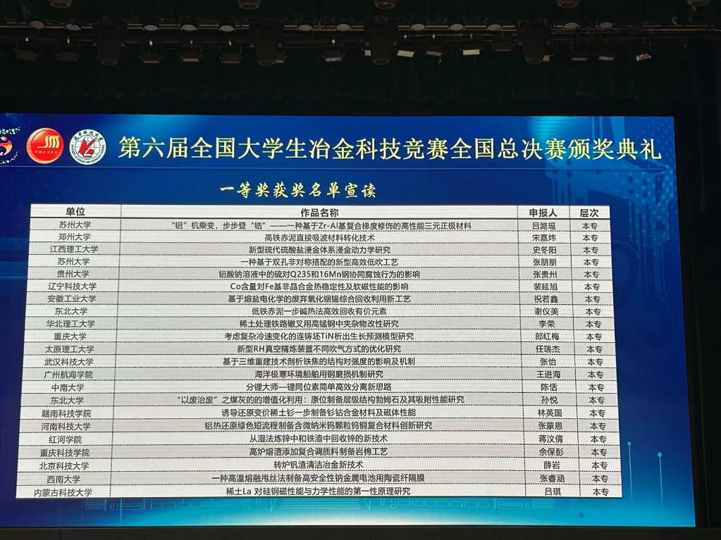 2023年7月26日-27日,第六届全国大学生冶金科技竞赛决赛在辽宁科技大学落下帷幕。本次竞赛由教育部全国高等学校材料类专业教学指导委员会指导,中国金属学会主办,辽宁科技大学承办,竞赛以“低碳智能、创新超越”为主题,开展创意设计、科技创新和仿真实训竞赛。竞赛共吸引了来自中南大学、北京科技大学、东北大学、重庆大学、上海大学等全国近百所高校参赛,参赛作品数达到1852项,参赛单位和参赛作品数量均再创新高。
