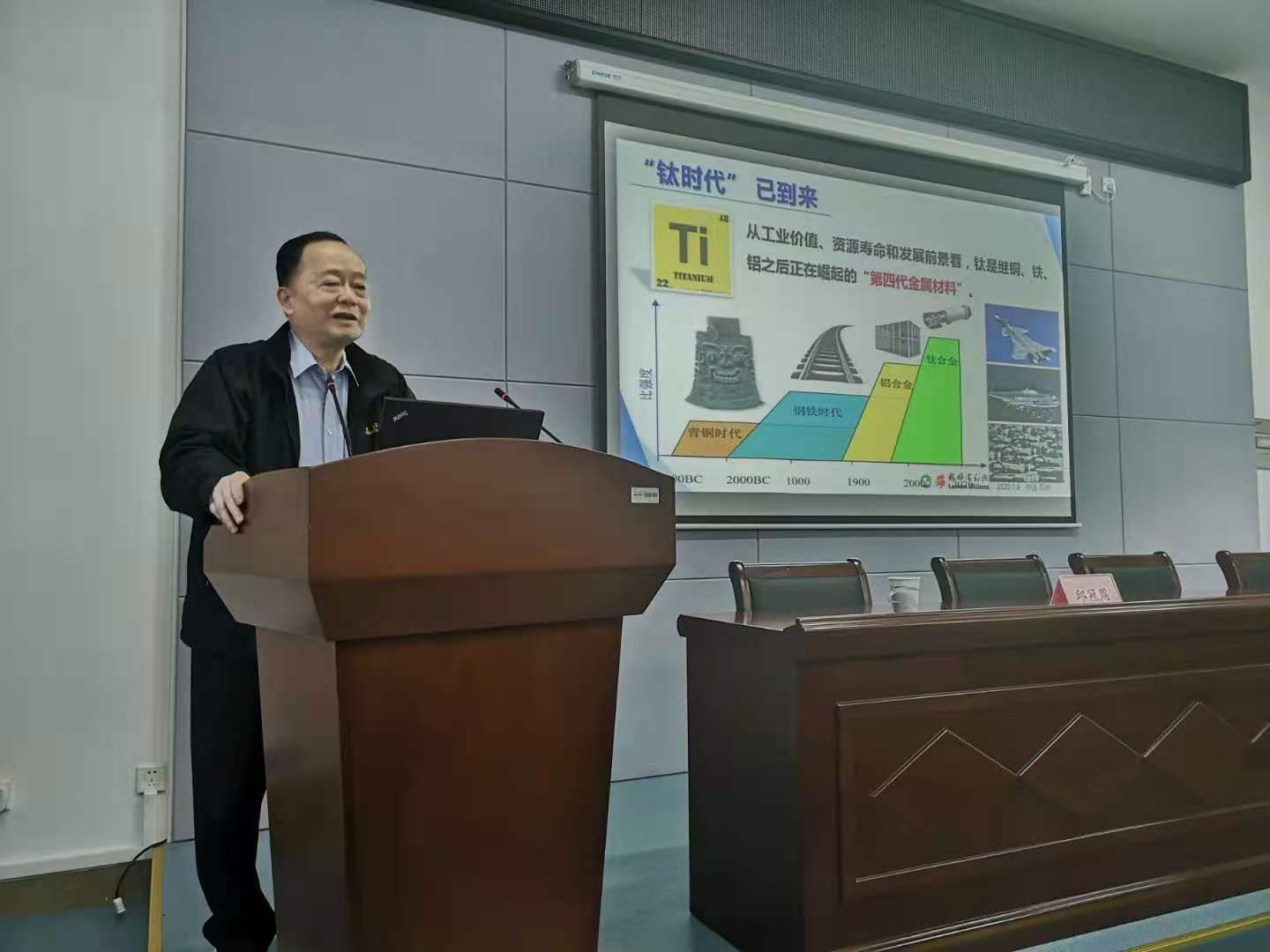 随后,邱院士为学院全体师生做了题为《中国钛工业的形势和我们的任务》的学术报告,他从我国钛工业面临的形势和现状谈起,指出从工业价值、资源寿命和发展前景来看,钛是继铜、铁、铝之后正在崛起的“第四代金属材料”,而我国钛工业的产业链不完善,对钛金属的加工与应用上存在严重不足。如何加强钢钛联合、提高我国钛金属的加工与应用水平、强化和完善我国钛工业产业链是冶金界今后的重大研究课题之一。