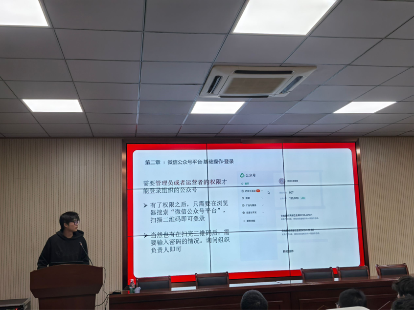 姜海同学分享他担任分团校部长时所遇到的困难和问题,以及他是如何攻坚克难,步步成长蜕变的历程。他讲解了一篇推文诞生背后需要什么,介绍了秀米中字号,行间距,字体以及颜色和排版、导出等板块。同时指出目前大多数同学们常犯的问题及解决方案。如何抓主题,技巧,参数设置,转场,突出时间地点都是同学们需要注意的问题。最后,姜海同学号召大家,在平凡小事中磨砺自己,于细微处传递温暖、在平凡中创造精彩,激励身边青年共赴青春征途,为班级建设,学院发展添砖加瓦。