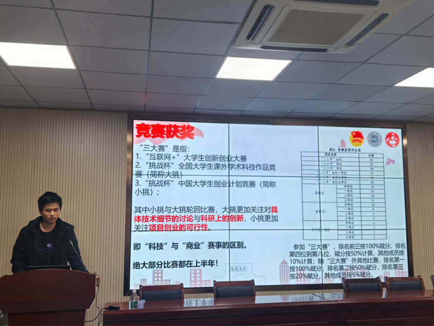 最后,保研至中山大学的龚奕维同学以“如何做一名好的学生干部,如何平衡好科研和学习”进行分享。他在台上阐述了多维度成长的理念并讲解了如何去实现多维度成长,毫无保留地分享了他的科研经历。从联系导师“毛遂自荐”时的忐忑,到实验室里熬夜做实验、分析数据的艰辛。更是告诫我们:“别害怕失败,主动找机会参与课题,哪怕是打下手,也能学到科研思路。”他还展示自己发表论文时反复打磨的稿件,传授文献检索、论文撰写的实用技巧。互动环节,学长耐心解答,给出个性化建议。从院校选择的权衡,到面试技巧的打磨,事无巨细。这场交流会如火炬传递,点燃大家的学习斗志,参会同学纷纷表示深受启发,将汲取学长学姐传授的经验,踏实走好求学路,在学术海洋破浪前行。