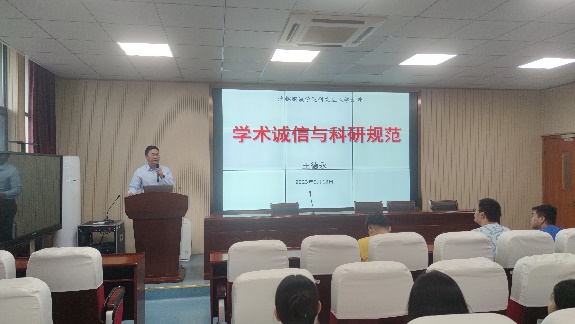 9月13日上午,邀请学院副院长王德永进行题为《学术诚信与科研规范》讲座,王院长从热点事件入手,列举典型案例,多维度深刻阐述学术诚信的重要性;他详细介绍学校有关学术诚信的系列政策,从文件来源、查阅方式、内容要点等方面详细阐述。他强调,作为新时代研究生,诚信是头等大事,学生应当首先摆正心态,树立正确价值观,在科研道路上走正路,为潜心研究开好头,奠基础。