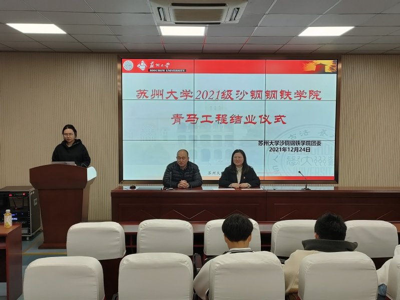 2021年12月24日中午,青马工程培训结业典礼在冶金楼3102顺利召开,学院党委副书记和辅导员成苗出席会议,全体学员参加会议,会议由分团校负责人付星萌主持。