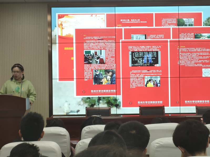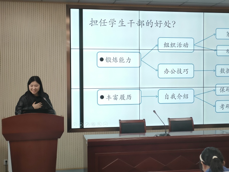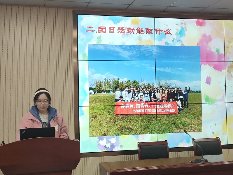 最后,优秀团支书代表,2020级金属二班团支书付星萌分享了优秀团日活动展示暨校十佳团日活动评选答辩模拟,介绍了团日活动的定义和目的,详细介绍了本次“十佳团日活动”的组织、开展、总结和最后的答辩过程,使新生团支书深受启发。最后,她总结道:一名优秀的学生干部学习和工作不应该冲突,要以极强的责任心,多多组织、参与活动,提升自己的能力,成为一名合格的学生干部。