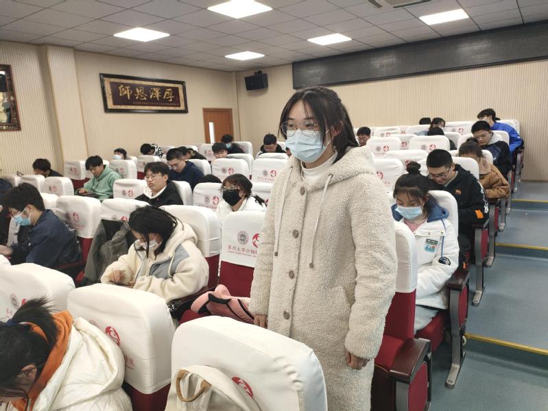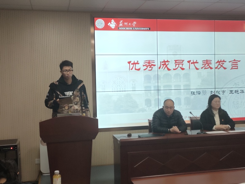 学院优秀学生干部代表,2018级的陈季娇以“砥砺前行、奋勇拼搏”为题目,向大家分享自己大学四年成功平衡工作与学习,并最终成功保研的经验,她说道,担任优秀的团支书和取得卓越的成绩并不冲突。班委首要身份是同学其次才是班干部,班委需要为班级服务,需要与同学好好相处,共同打造一个优秀的班集体。学姐丰富的经验、高效方便的学习和工作方法使大家深受启发。