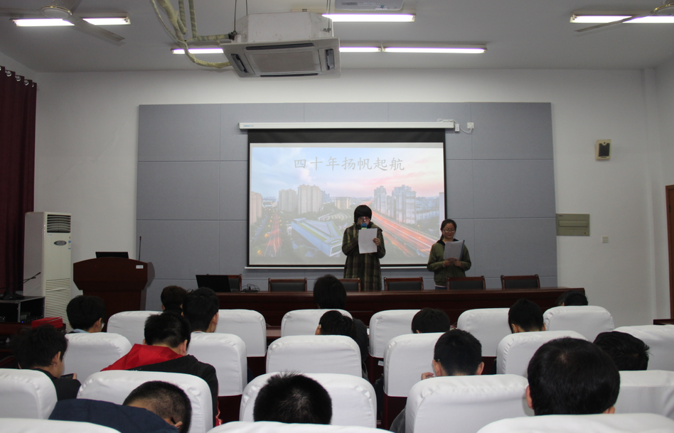 我院旨在通过开展“庆祝改革开放四十周年”主题演讲活动,加强校园精神文明建设,带领同学们回顾改革开放40年历史进程,教育引导我院学生坚持中国特色社会主义道路自信、理论自信、制度自信、文化自信,激励大学生砥砺奋进,珍惜美好时光,刻苦学习、全面发展,铭记历史,不忘历史。