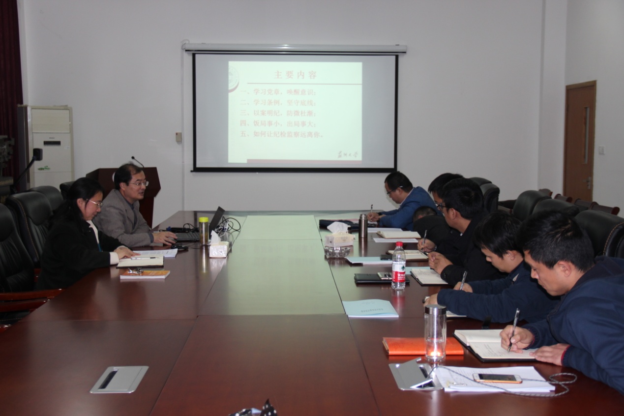 12月5日下午,沙钢钢铁学院理论学习中心组召开加强党风廉政建设专题学习,邀请校纪委副书记、监察处处长黄志斌做了专题辅导报告“学党章唤醒党员意识 学条例坚守纪律底线”。学院党委书记宋清华主持,学院中心组全体成员参加了此次专题学习。