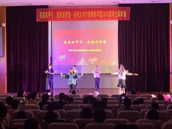 2020年10月17日晚7:00,喜迎双甲子,迎新逐梦想——苏州大学沙钢钢铁学院2020级师生联欢会在苏大阳澄湖校区图书馆大报告厅成功举行。苏州大学沙钢钢铁学院党委书记宋清华、辅导员、班主任参加了本次活动。恰逢苏大120周年校庆,希望沙钢学子秉承校训,传承苏大人精神,砥砺前进,奋进开拓,梦想再起航。