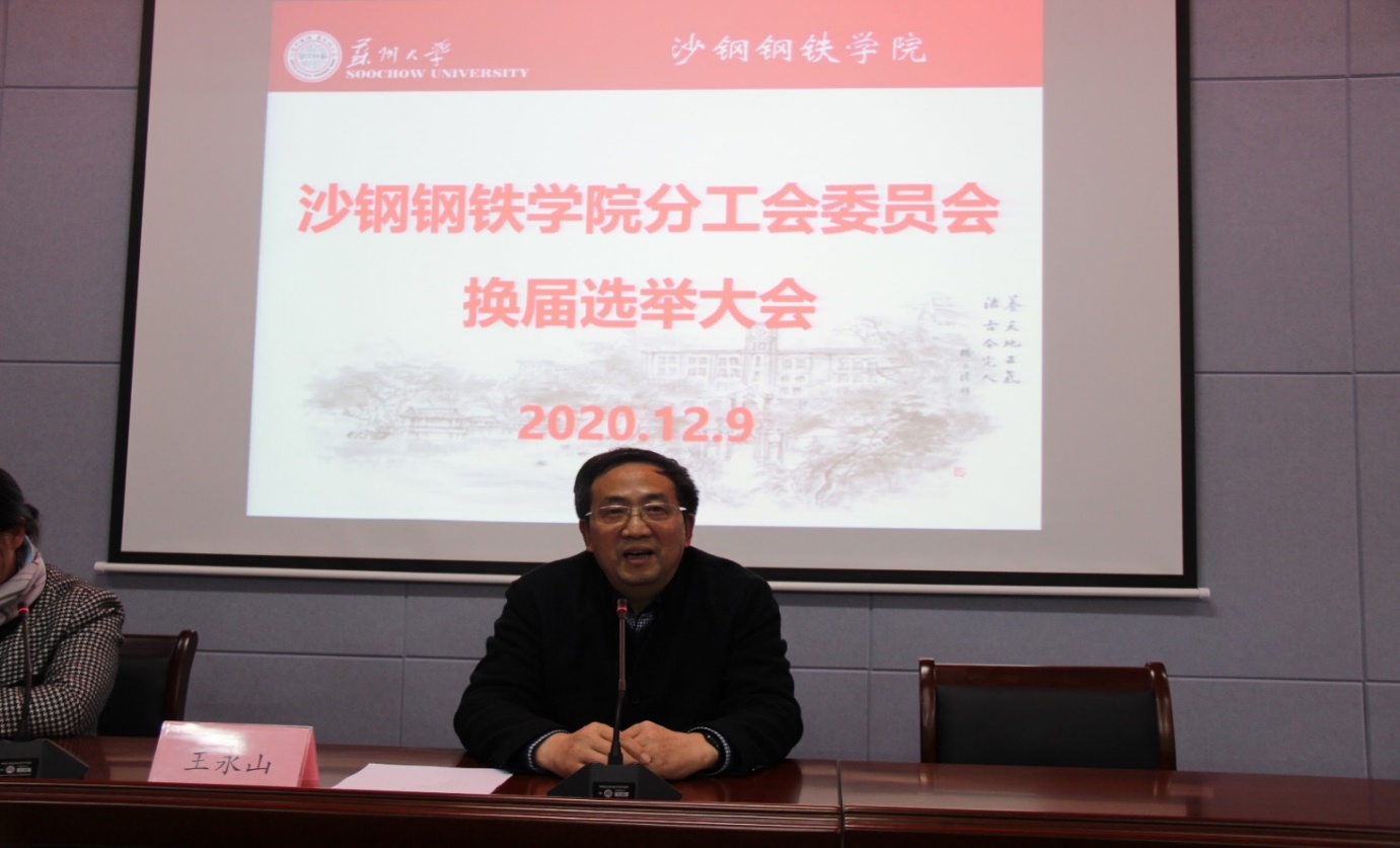 2020年12月9日,沙钢钢铁学院顺利召开了分工会委员会换届选举大会,邀请校工会主席王永山莅临指导,学院全体工会会员参加了会议。会议由院党委书记宋清华主持。