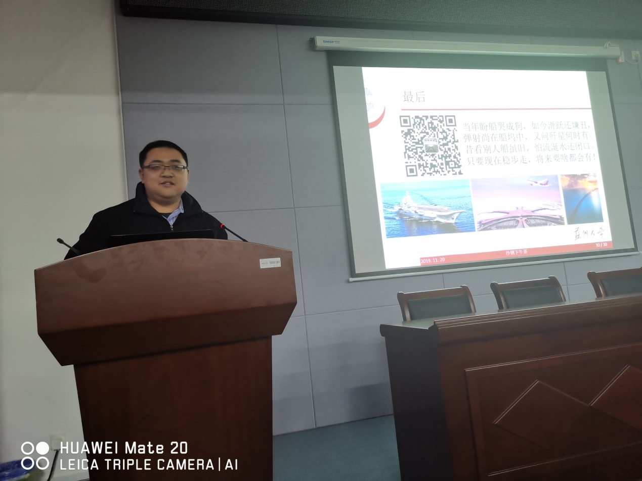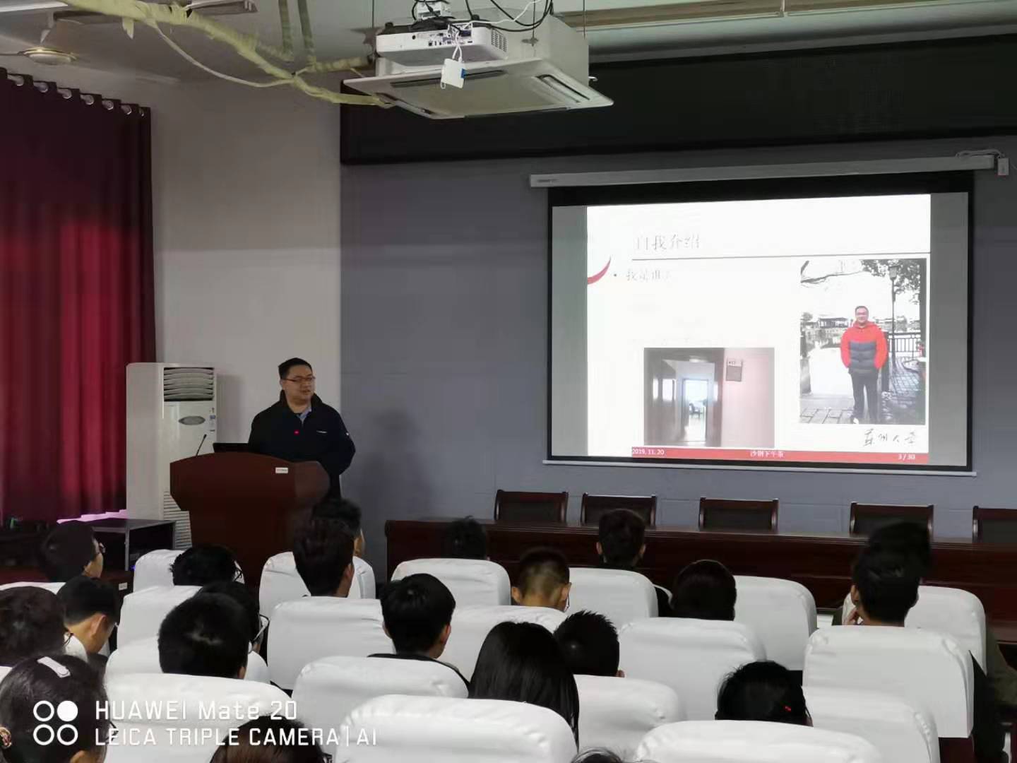2019年11月20日下午,海归博士、苏大优秀青年学者项重辰老师为沙钢钢铁学院2019级新生带来了一场“放飞梦想 筑梦未来 ”专题讲座,归国学者走进大学生也是校统战部的传统活动,学院党委书记宋清华、2019级新生班主任张庆宇老师以及2019级全体新生参加了本次活动。