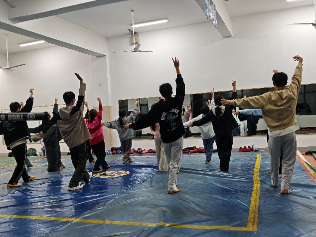 几周前,初入大学校园的他们带着懵懂青涩,面对学姐演示的舞蹈动作手足无措;几周后,反复打磨的默契让每一个节拍都精准落地。没有聚光灯的彩排室里,音乐与舞步交织,曾经的拘谨渐渐褪去,取而代之的是愈发从容的姿态。临近比赛的冲刺阶段,指导老师仔细打磨动作细节,同学们反复熟记每一个走位,滴落的汗水里藏着对完美的执着,此起彼伏的鼓励声成为青春里最珍贵的注脚。