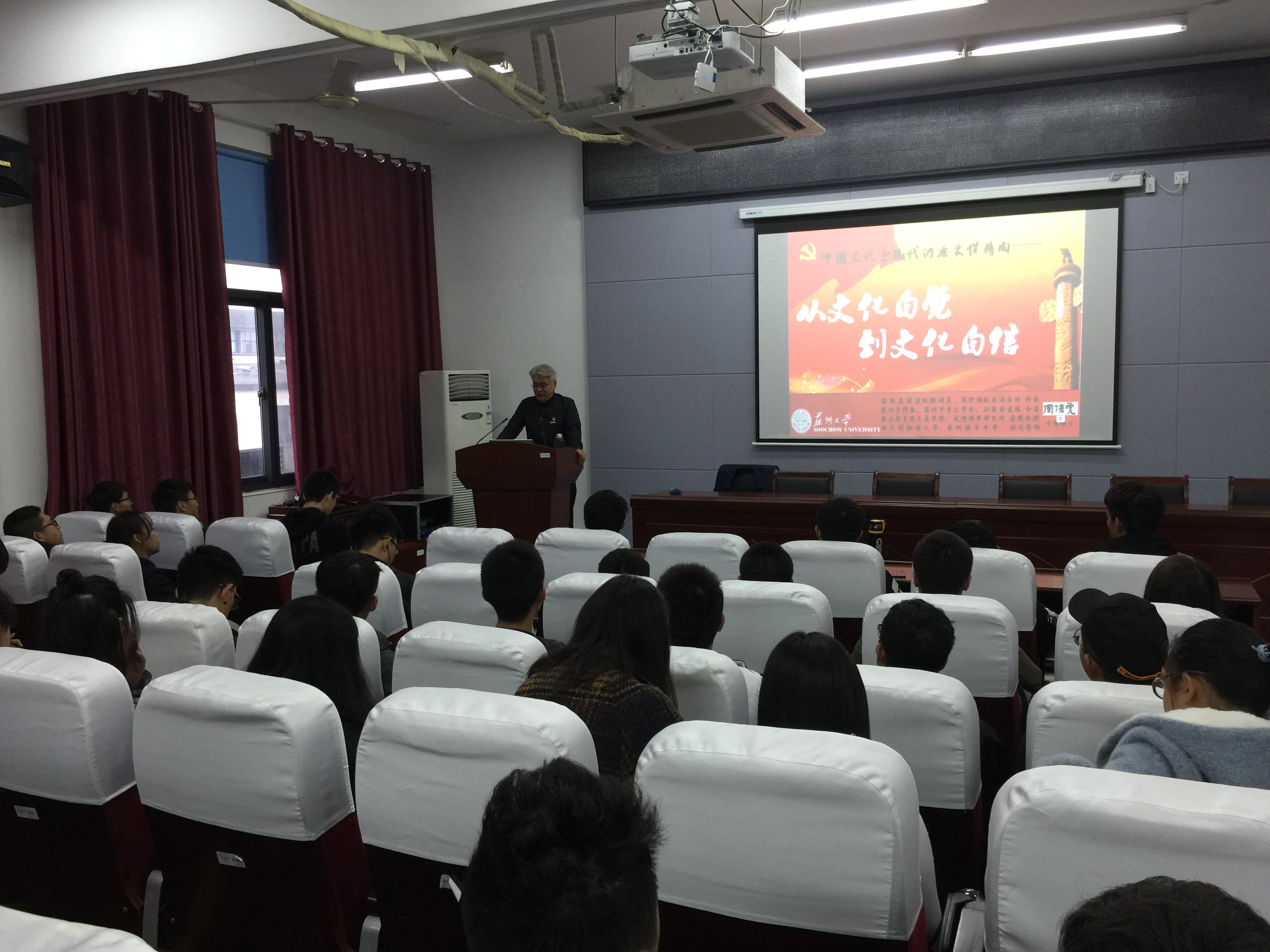 “文化自信是一个民族、一个国家以及一个政党对自身文化价值的充分肯定和积极践行,并对其文化的生命力持有的坚定信心。”为了让大学生树立文化自信、增强自身文化认同感,2019年11月27日下午2点阳澄湖校区分馆联合沙钢钢铁学院邀请到苏州市作家协会、姑苏区书法家协会会员、苏州大学马克思主义学院兼职教授、西交利物浦大学校外导师的中哲硕士周伟虎先生,给学院的学生作题为“从文化自觉到文化自信”的讲座。