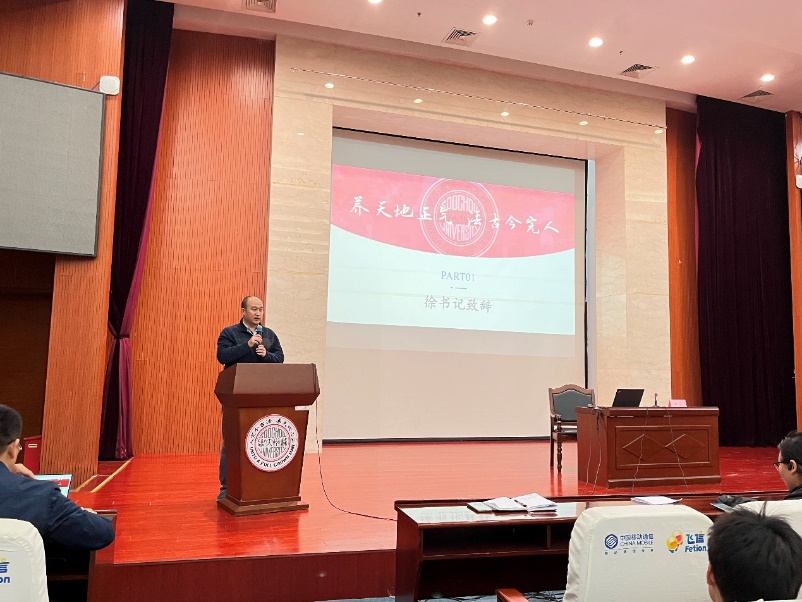 首先,徐海洋为本次科技文化节致开幕词。他表示,培养高质量学生要始终坚持面向国家重大需求,帮助青年学生接受科创启蒙,培养勇于创新、积极创造的新时代新青年。他希望大家要以此活动为契机,深入了解相关科研竞赛知识及参与渠道,努力学好专业知识,提升自身创新活力,并激励大家树立科创报国理想,永立时代潮头,争做时代先锋。