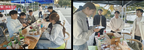 手工创作区,温馨氛围扑面而来。志愿者们提前备好彩色铁丝、易拉罐、剪刀、胶水等材料,耐心指导同学们DIY专属小花盆。同学们发挥奇思妙想,专注地弯折铁丝、裁剪易拉罐,在指尖的流转中,一个个造型别致、创意十足的小花盆陆续诞生。现场设有专人全程指引安全操作,确保大家安心创作。根据作品完成程度,同学们还收获了金属书签、笔筒、抽纸等对应奖励,创意与成就感双双拉满。