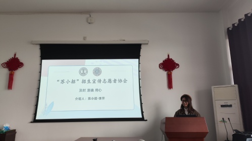 学校招生宣传志愿者、“苏小招”招生宣传志愿者协会成员、2022级预防医学专业李芹同学对学校招生宣传志愿者协会及寒假回访高中母校活动进行详细介绍,鼓励新生积极组队报名参与活动。