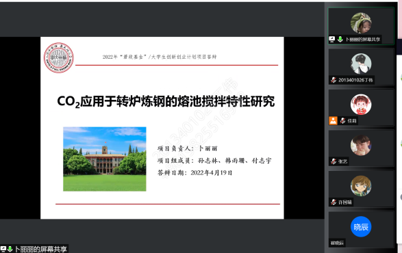 2022年4月19日下午3:30,沙钢钢铁学院2022年本科生科研项目答辩会如期举行,受疫情影响,本次答辩会采取了线上答辩的方式,参与本次答辩的本科生项目类型有莙政基金、大学生创新创业训练计划项目。本着公平公正公开的原则,本次答辩会特邀了七位专家导师担任评委,17位同学参与答辩。会议由学院副院长丁汉林主持。
