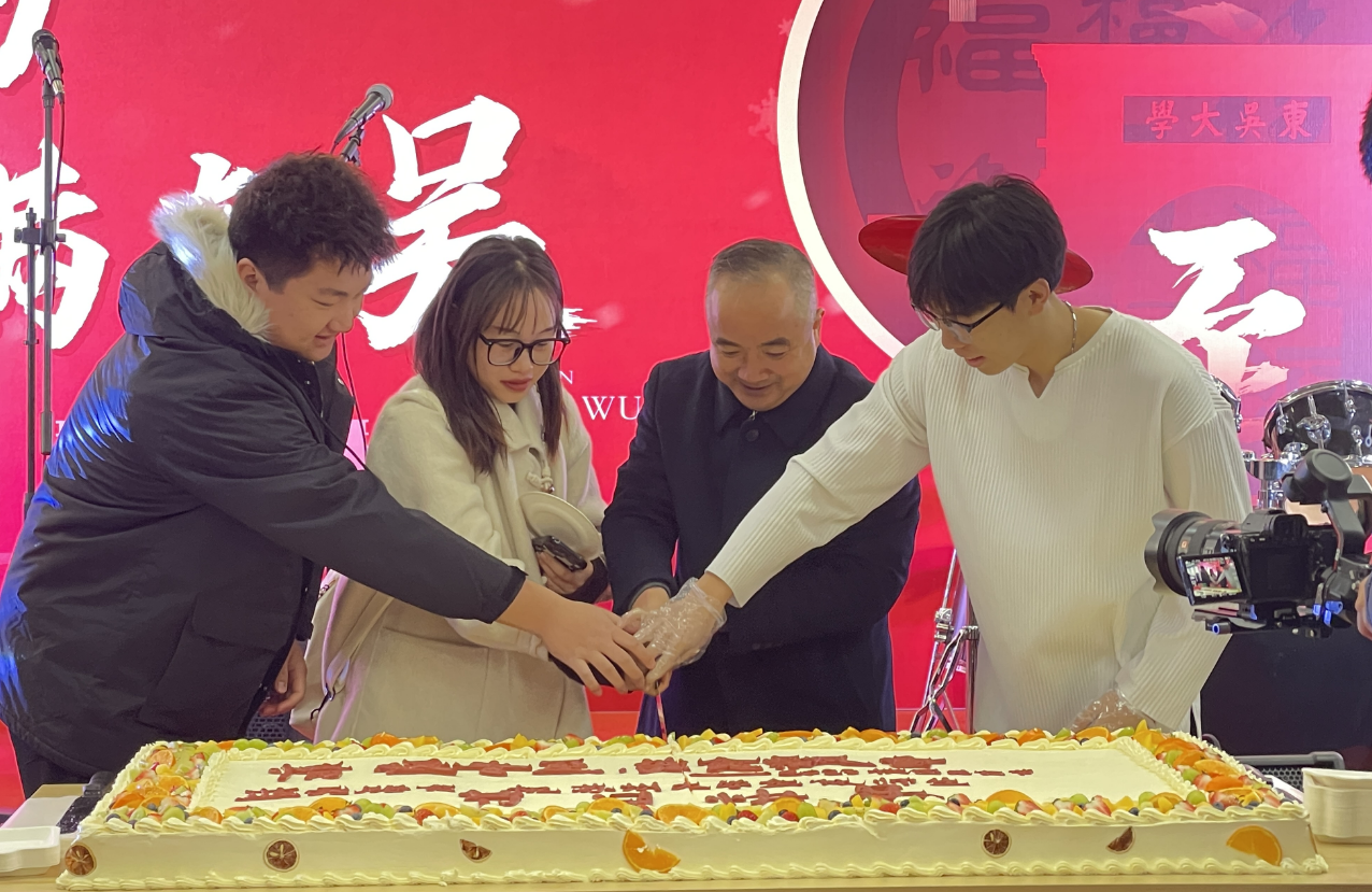 在浓郁的节日氛围中,校领导查佐明和相关职能部门负责人来到阳澄湖校区学生食堂,与同学们欢聚一堂庆冬至。我院学生代表与校领导共同切开冬至主题蛋糕、同包饺子,把“幸福”的馅料包进饺子里。