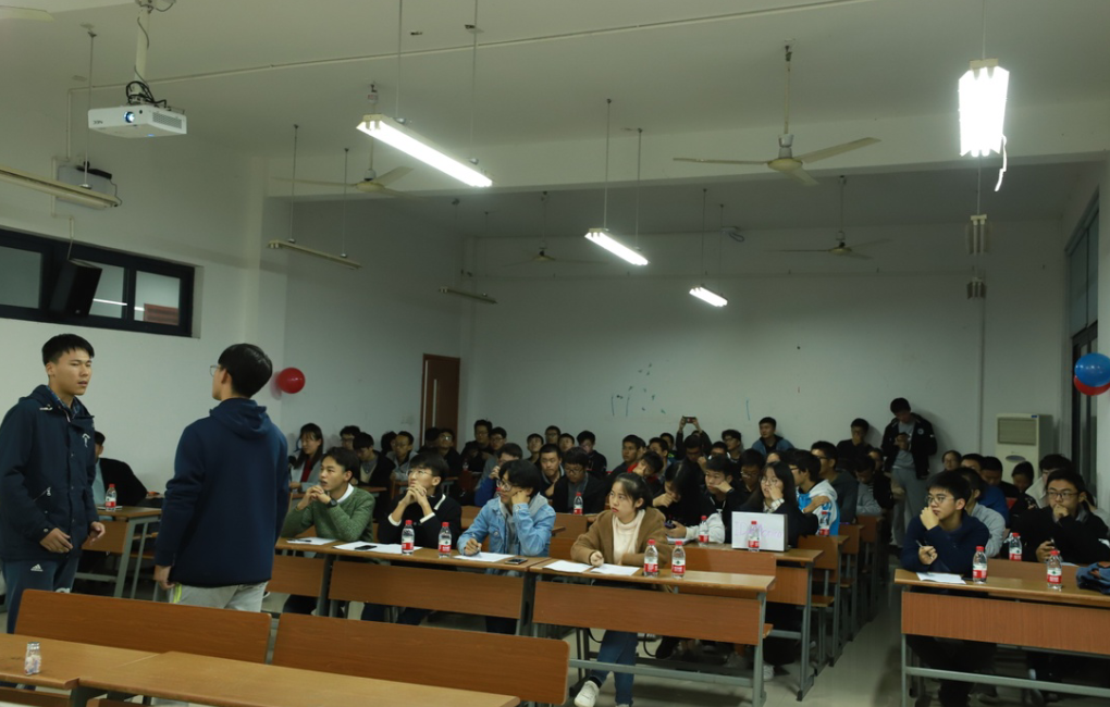 在紧张的计分阶段,主持人组织全体观众一起做了小游戏,主持人任昱瑾同学一手策划的游戏将现场的气氛推至高点。