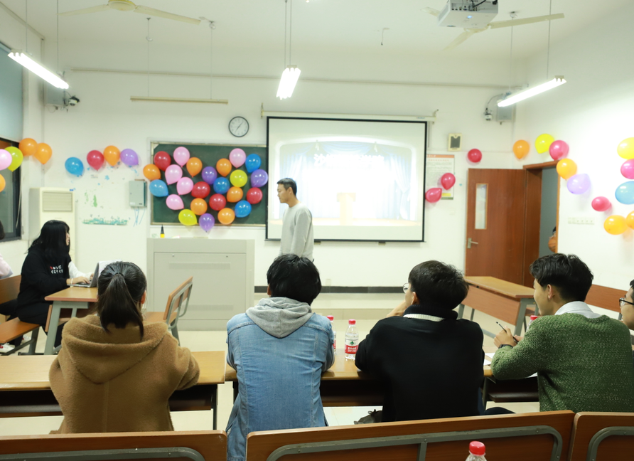 活动前夕,科协成员布置了会场,同学们积极配合,干劲十足。布置会场用的气球经过一道道程序:吹起、封口、造型、粘贴,被迅速地挂满了会场。成员们将场地前半部分地桌子搬至楼道,空出来地空间用于表演。再把事前买好地水摆放至观众席。准备就绪后,等待观众的到场。