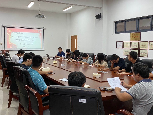 随后,教工一支部书记许继芳同志领学《习近平谈治国理政》第三卷中《用新时代中国特色社会主义思政铸魂育人》篇目。组织大家认真学习习近平总书记教育重要论述,全面贯彻党的教育方针,解决好培养什么人、怎样培养人、为谁培养人这个根本问题。与会党员结合具体工作,围绕立德树人、专业课程育人和教学改革创新等方面积极交流发言,纷纷表示将坚持用习近平新时代中国特色社会主义思想铸魂育人,扎实推进课程思政改革实践,创新教育教学方法,全力构建“三全育人”格局、落实立德树人根本任务,努力培养担当民族复兴大任的时代新人、培养德智体美劳全面发展的社会主义建设者和接班人。